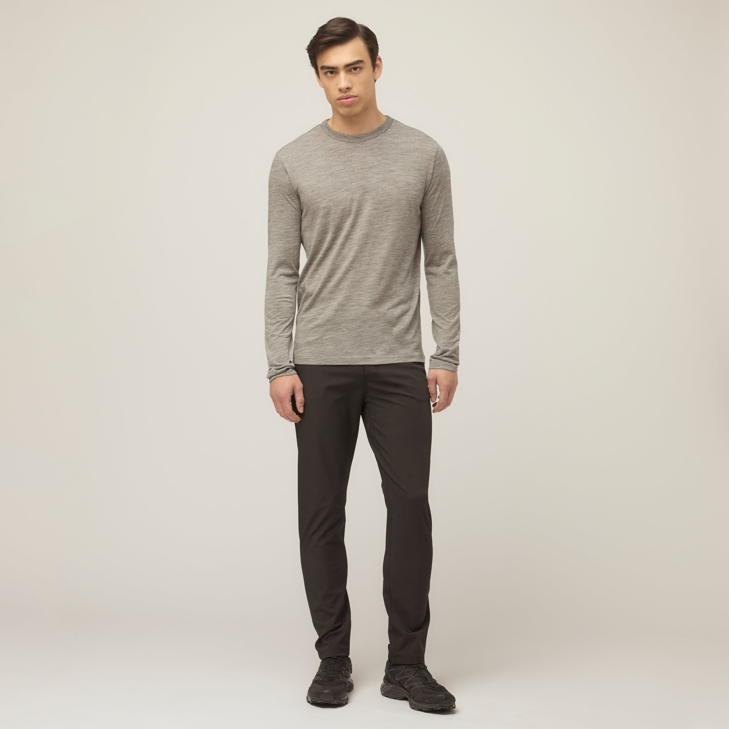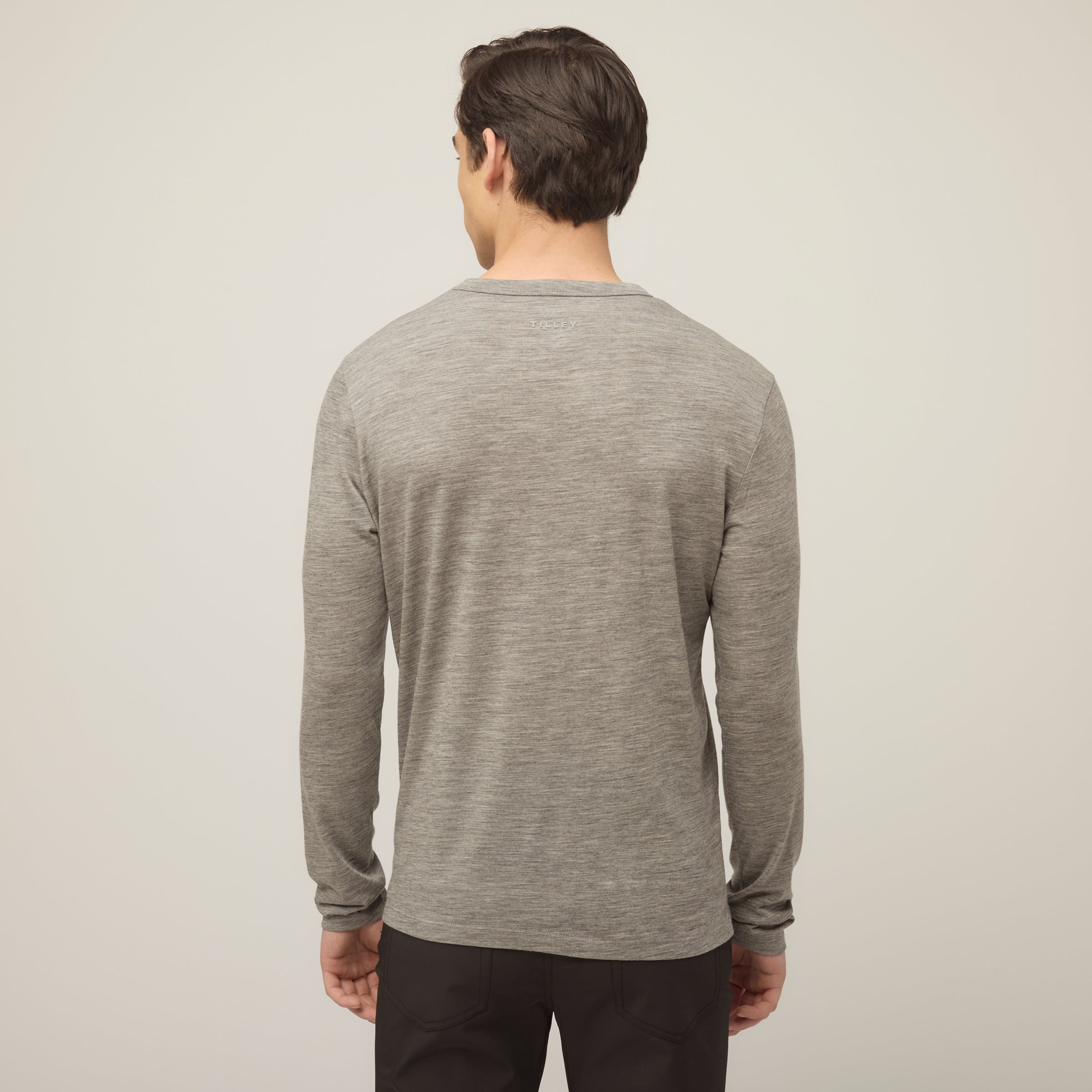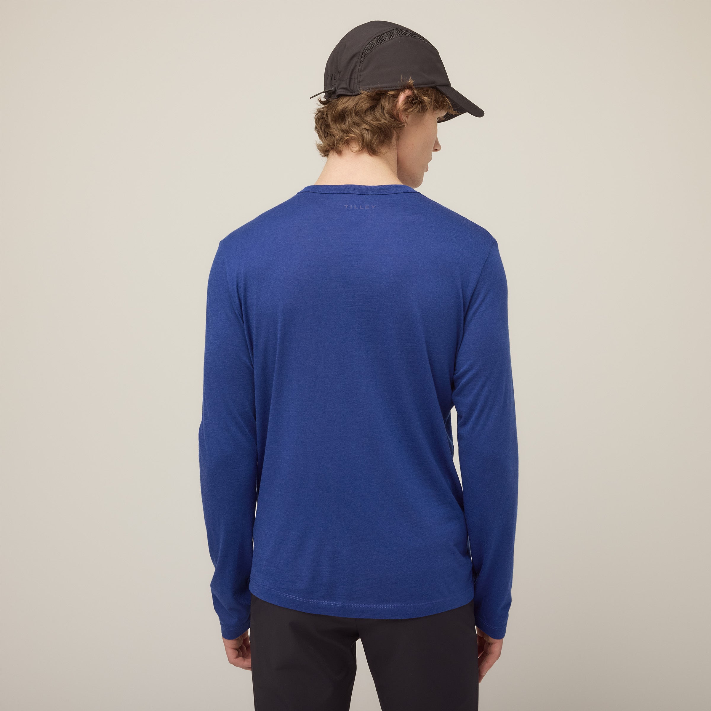 Essential for total comfort in the city or on the trail, this ideal long sleeve layer uses an extra-fine knit merino jersey making it naturally moisture wicking, temperature regulating and odor eliminating.
