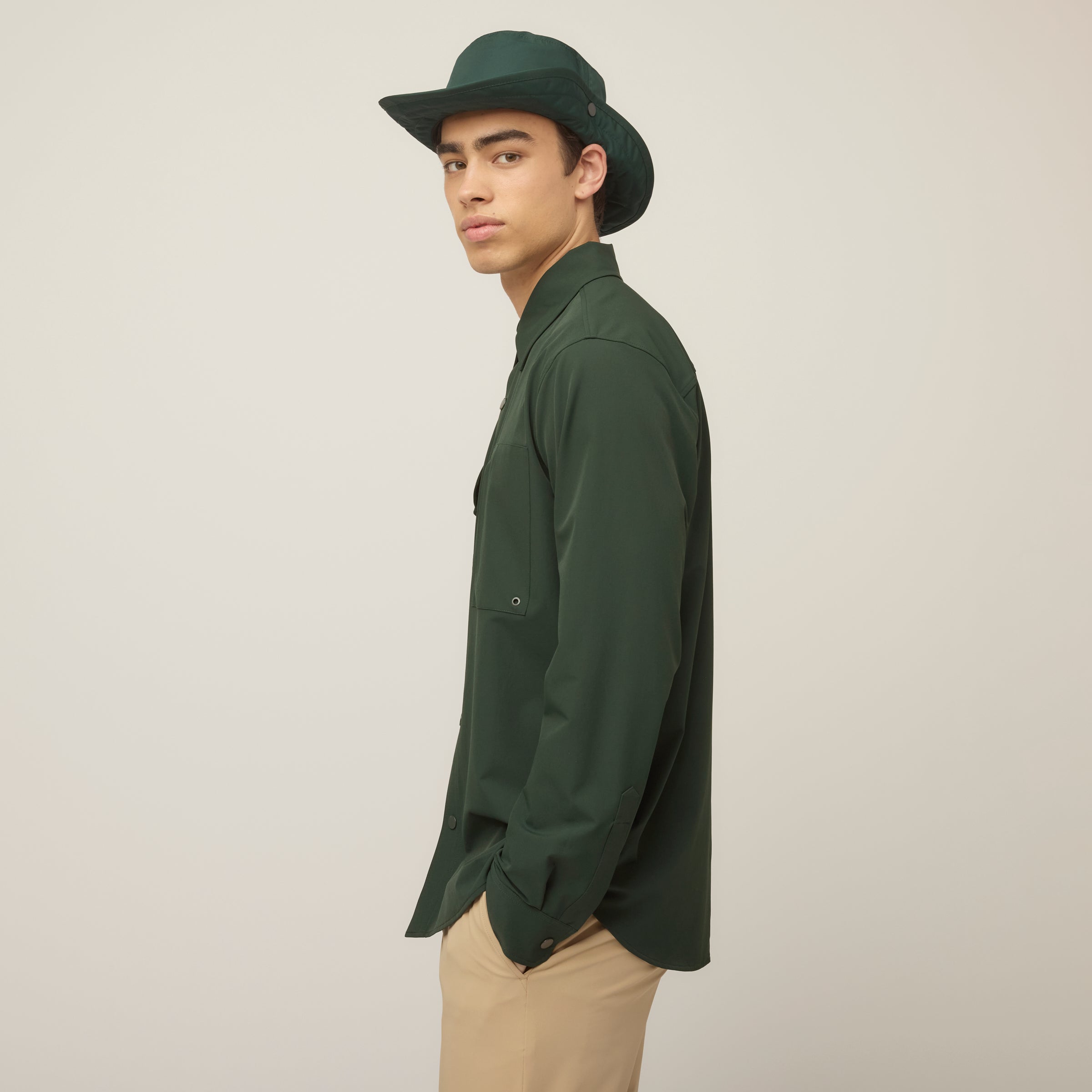 A versatile layer for any season, the Long Sleeve All-Terrain Overshirt is made from a durable yet lightweight performance fabric that moves with you. Woven construction offers just the right amount of structure while providing water and abrasion resistant performance. Designed with a classic fit, regular shoulders, and regular length, it’s the perfect mix of function, comfort and style.