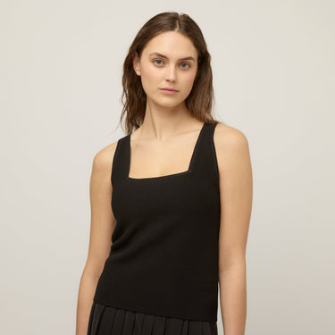 The Square Neck Rib Shell is a refined essential with a sleek, form-fitting silhouette. Crafted from a smooth viscose-nylon ribbed knit, it offers just the right amount of stretch for a sculpted yet comfortable feel. The square neckline adds a modern edge, making it perfect for layering or wearing on its own. Designed with a fitted shape, regular length, and sleeveless cut, providing a clean, streamlined look.