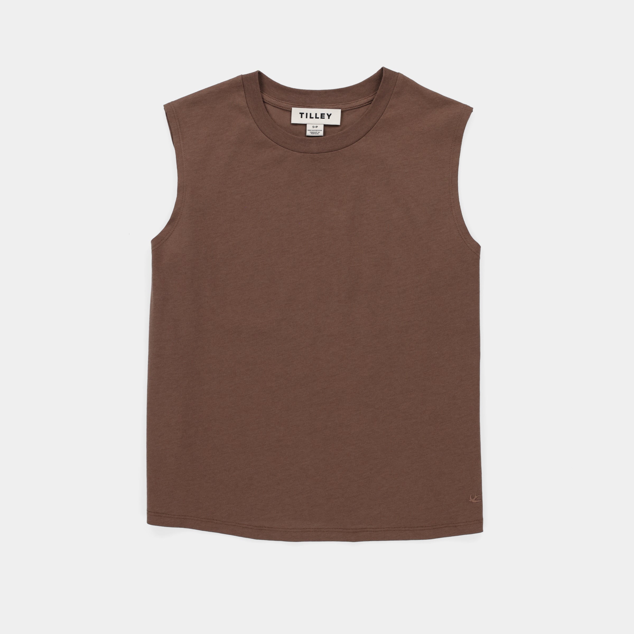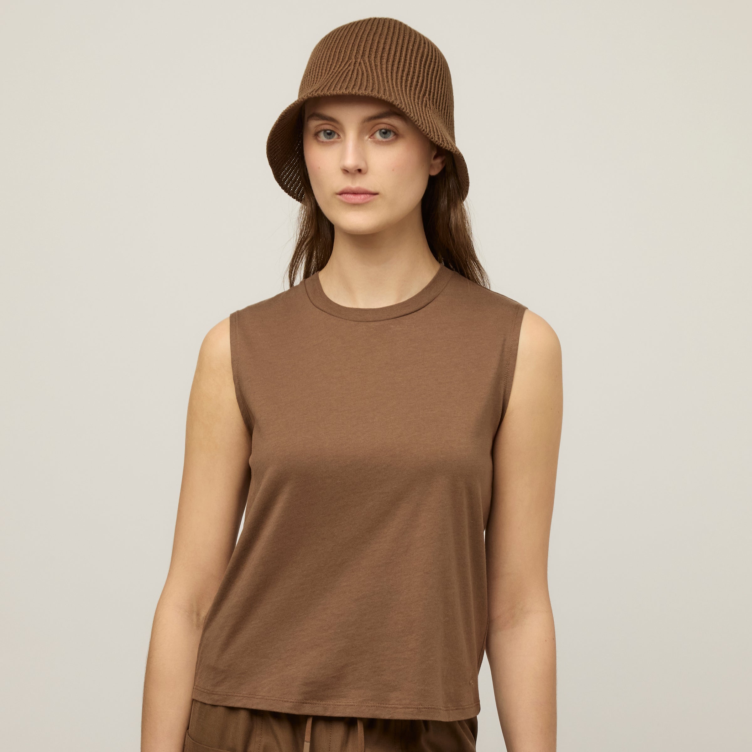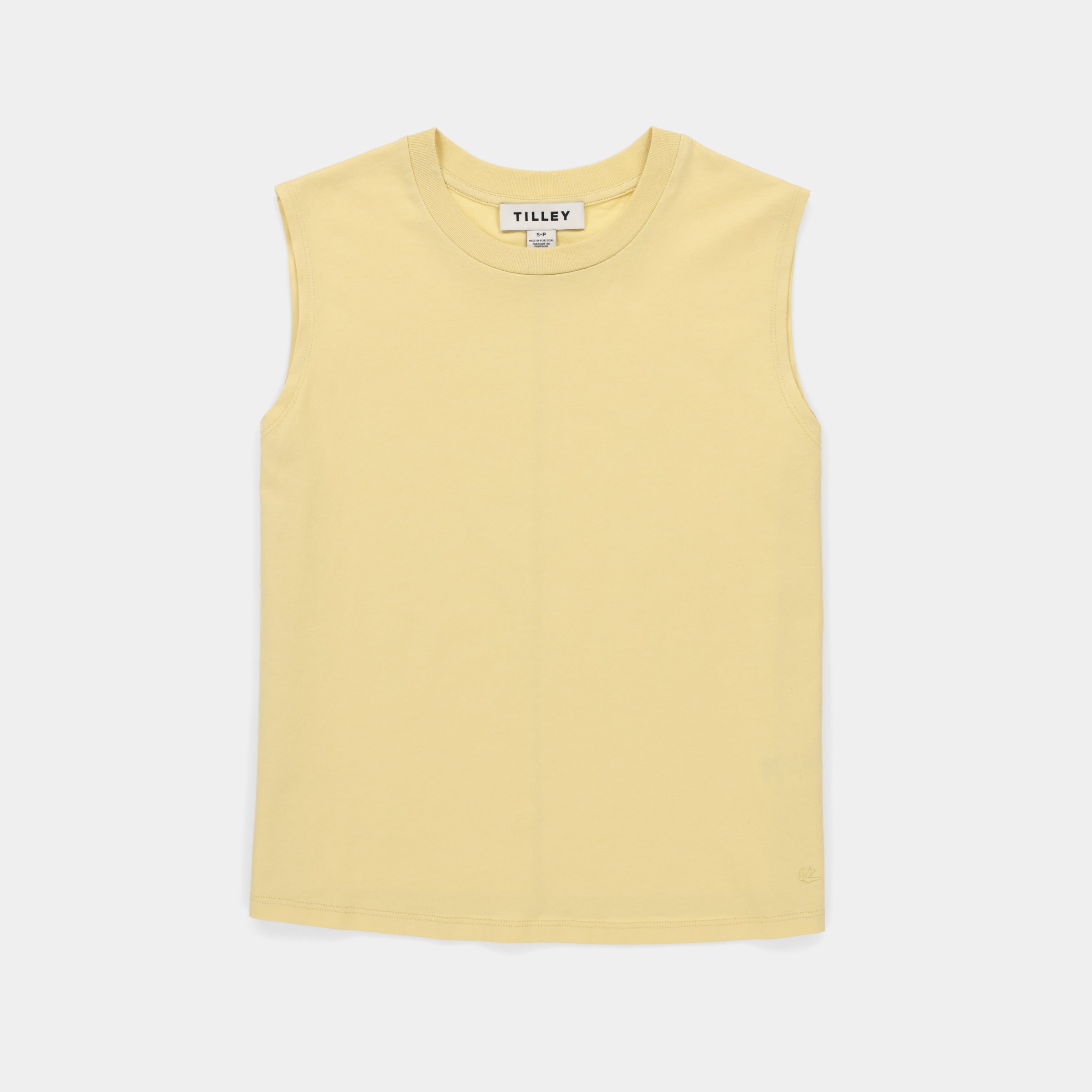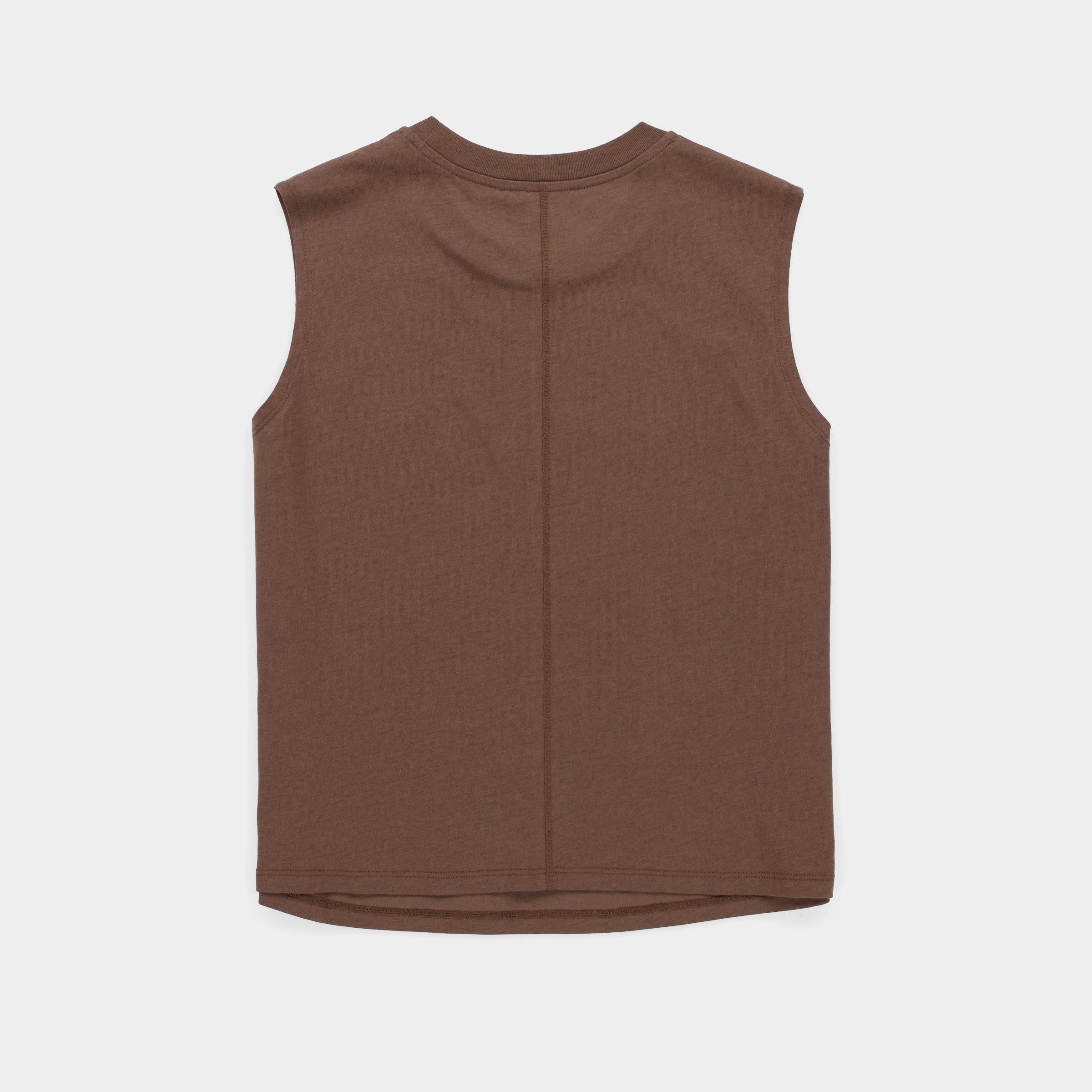Perfected for anything from exceptionally warm weather to active adventures the Lightweight Muscle Tank is made from a smooth knit blend that combines organic cotton and seaweed fibers to create a naturally soft, breathable fabric with a relaxed drape. The sleeveless cut and wide armholes create an effortless, airy silhouette, perfect for layering or wearing solo. Featuring a cropped length, regular fit, and regular shoulder, it balances comfort with a modern, laid-back feel.