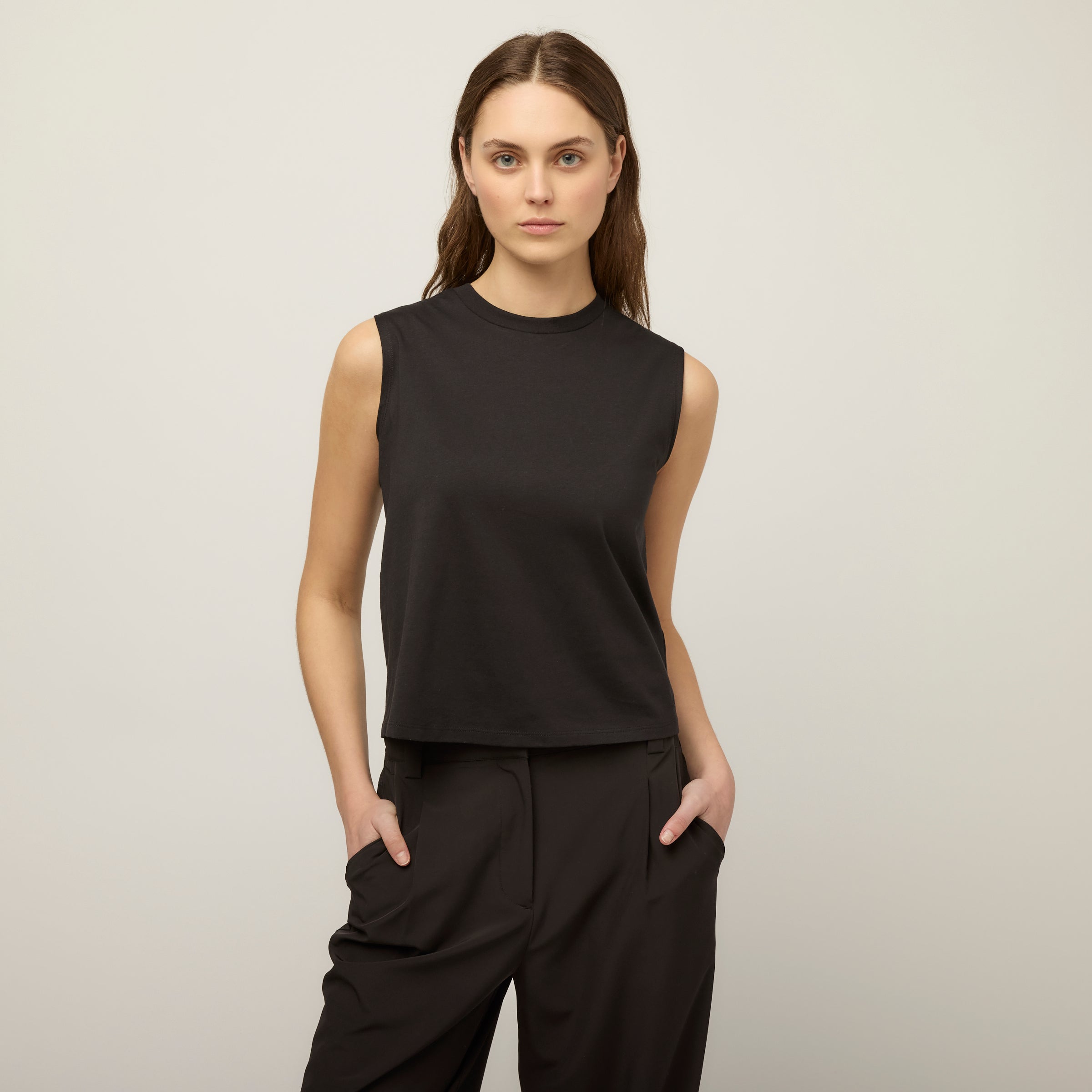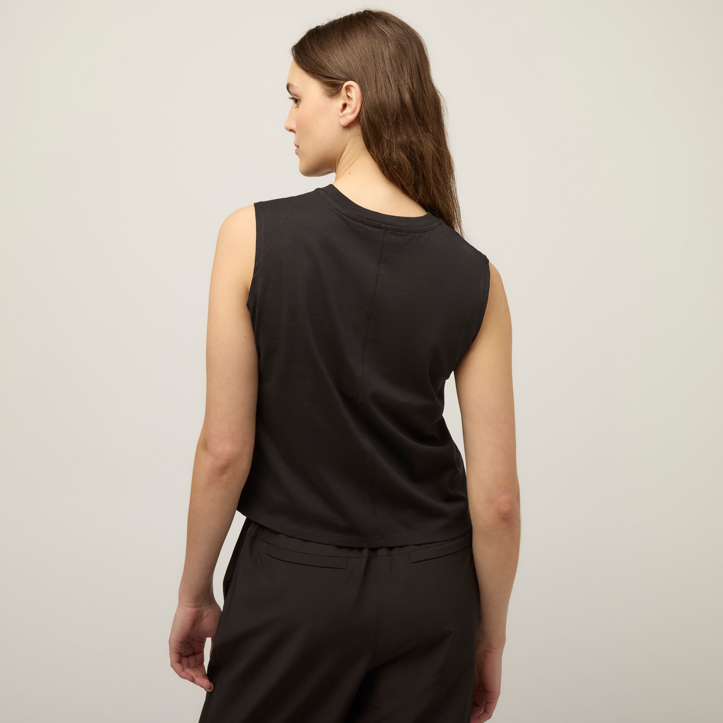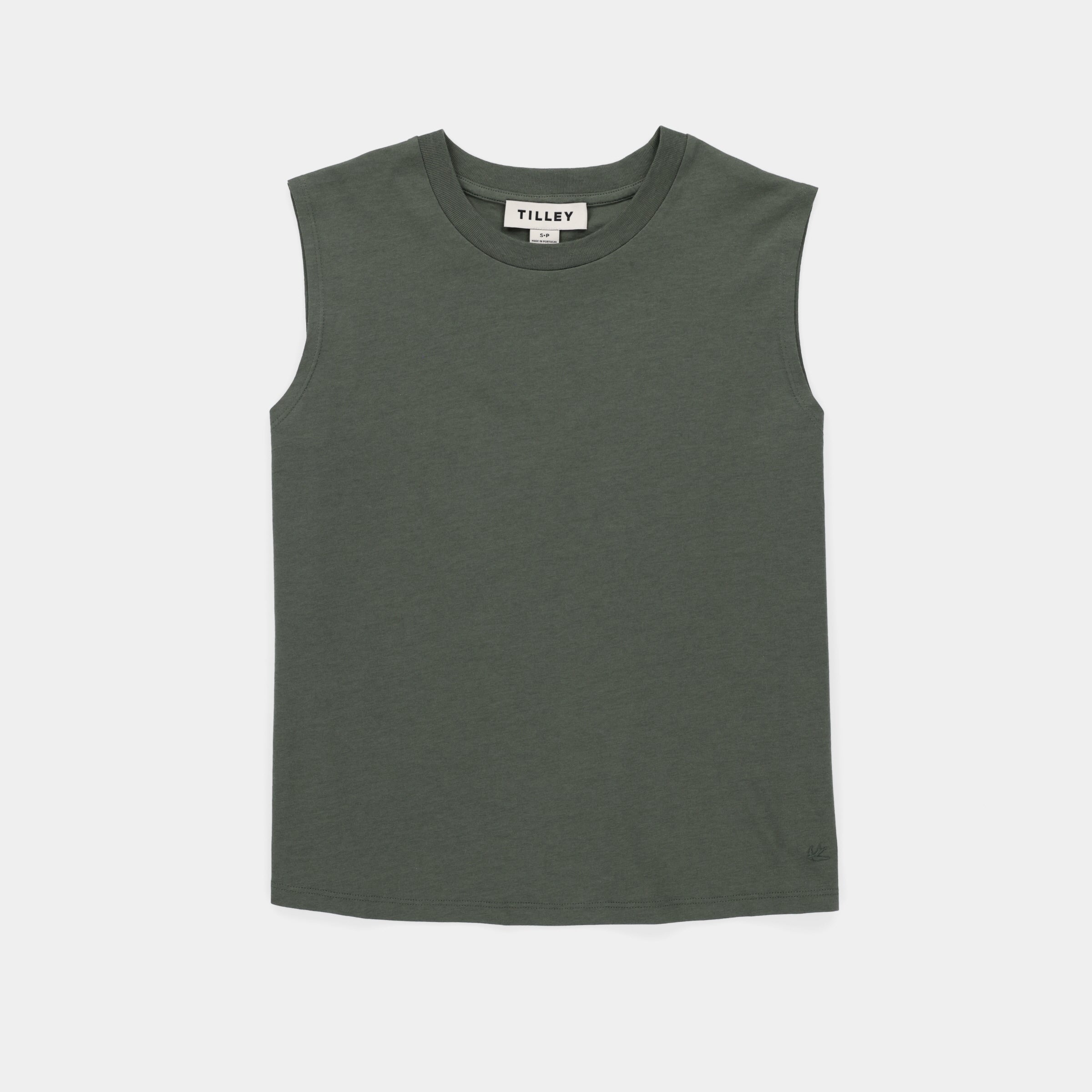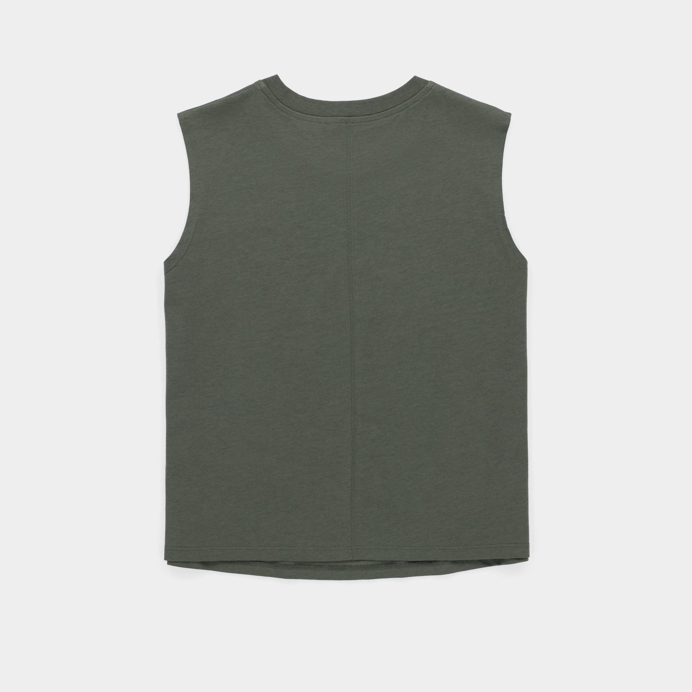 Perfected for anything from exceptionally warm weather to active adventures the Lightweight Muscle Tank is made from a smooth knit blend that combines organic cotton and seaweed fibers to create a naturally soft, breathable fabric with a relaxed drape. The sleeveless cut and wide armholes create an effortless, airy silhouette, perfect for layering or wearing solo. Featuring a cropped length, regular fit, and regular shoulder, it balances comfort with a modern, laid-back feel.