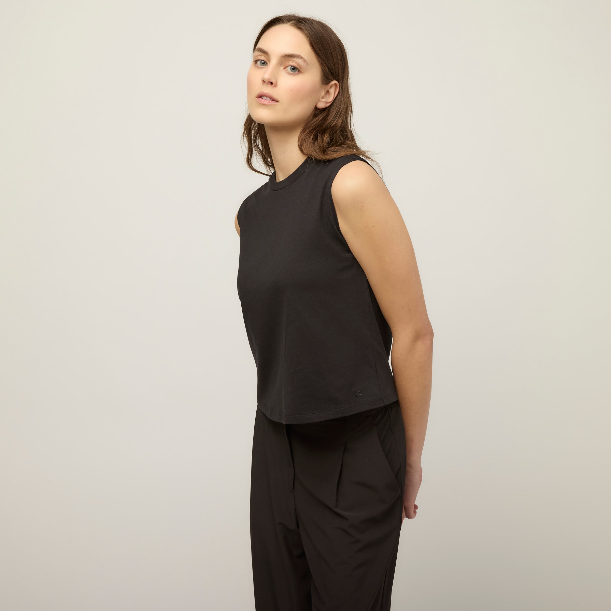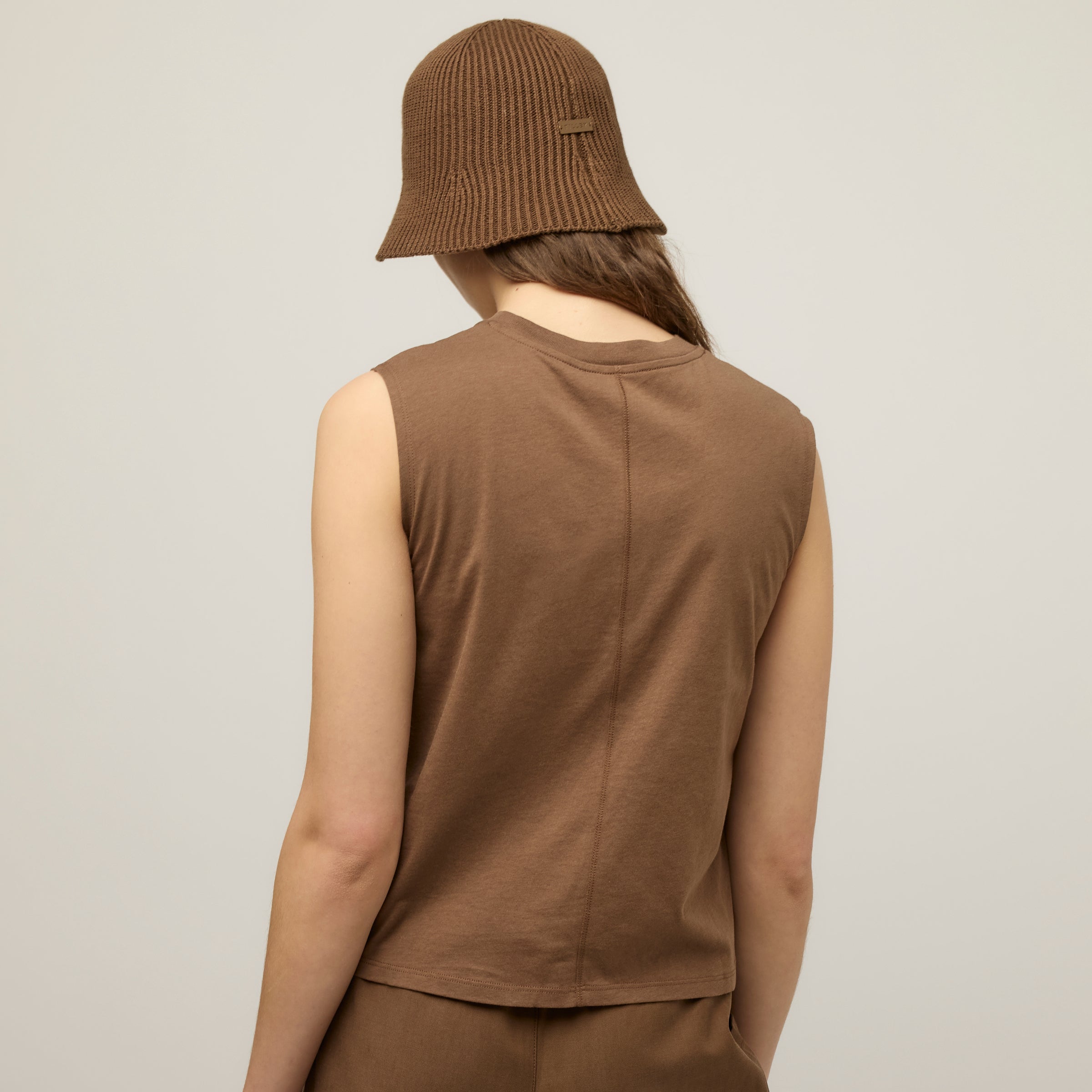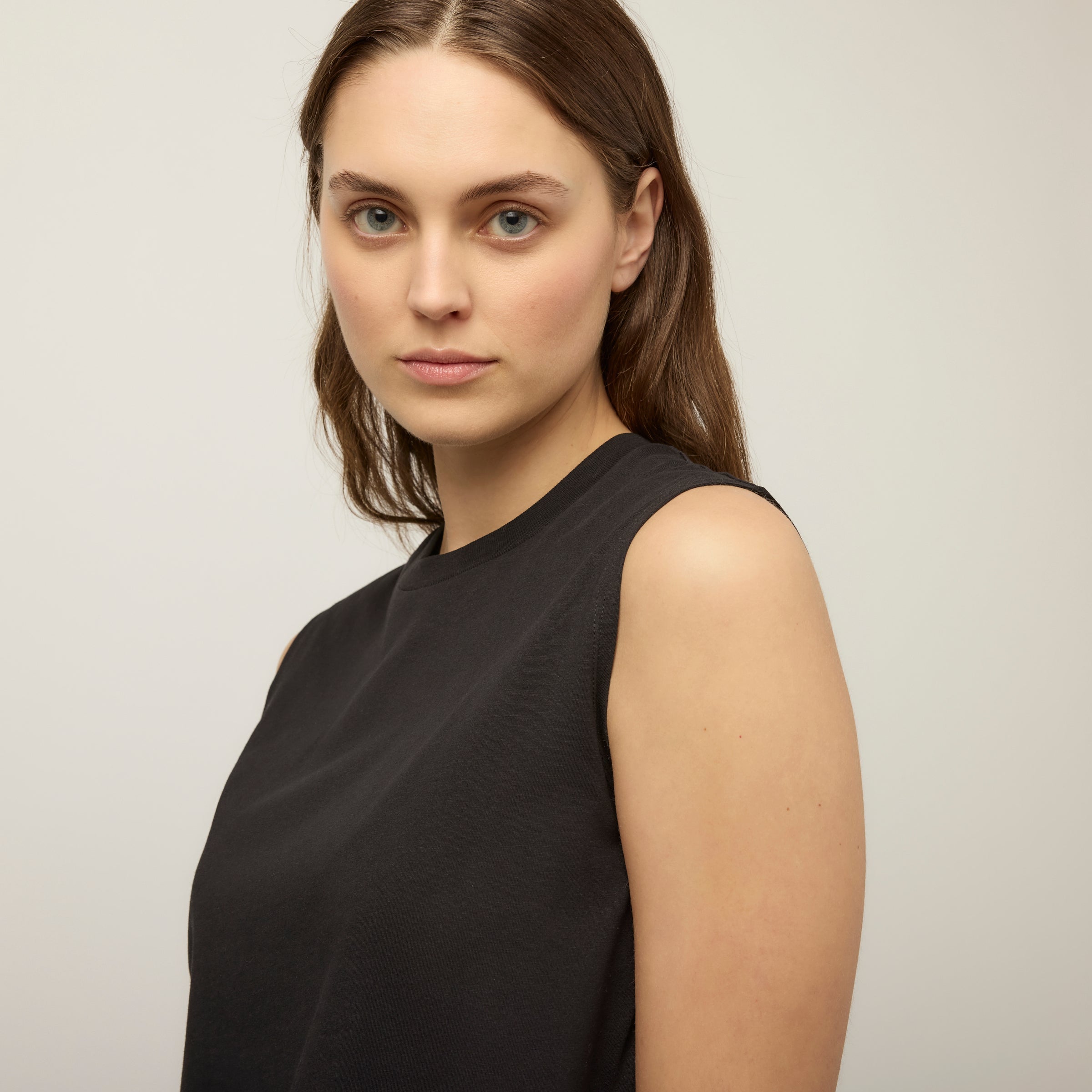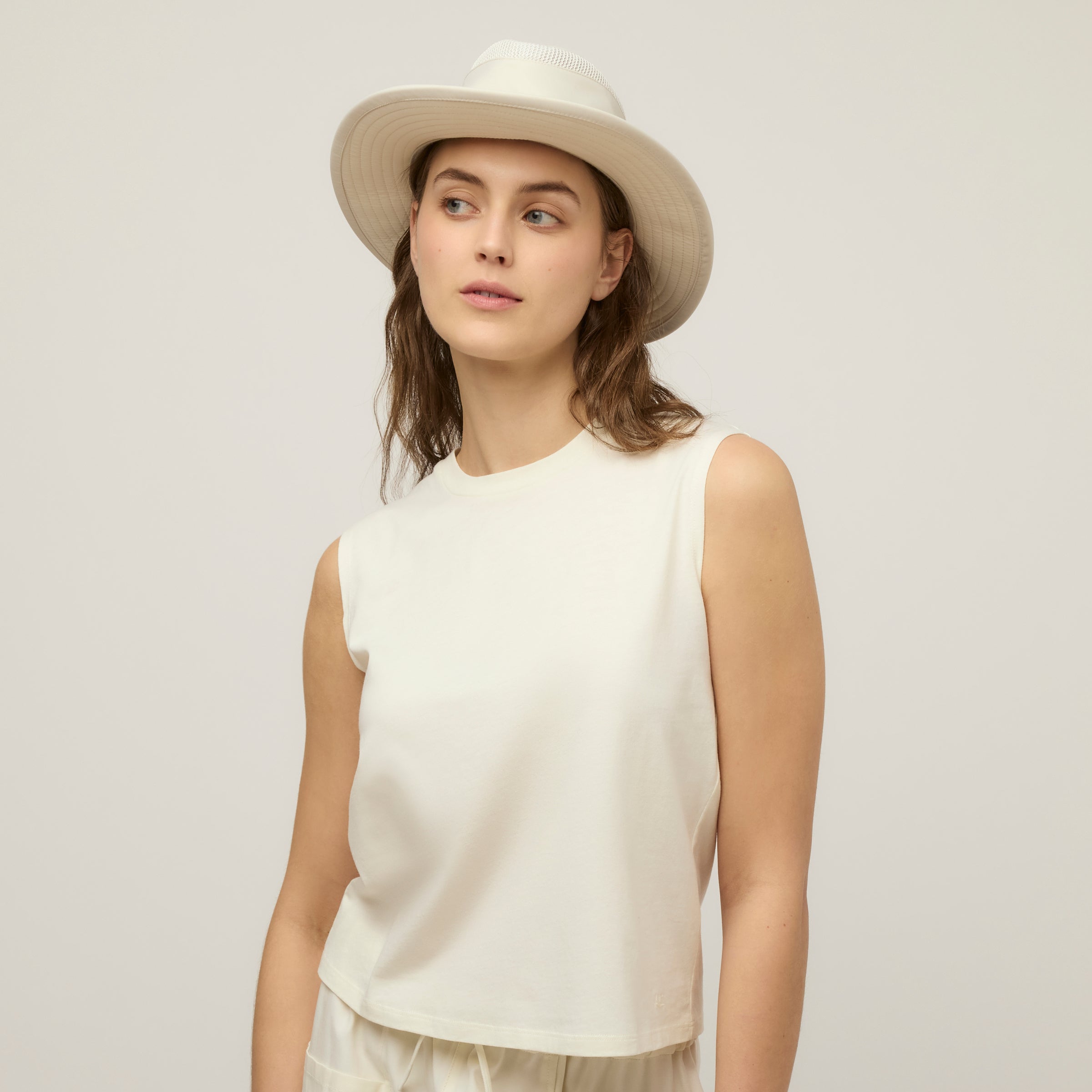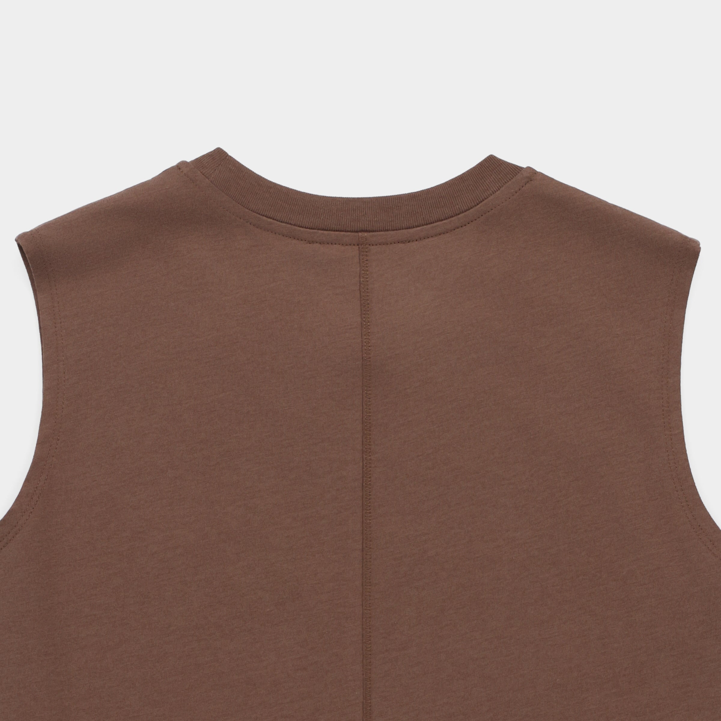 Perfected for anything from exceptionally warm weather to active adventures the Lightweight Muscle Tank is made from a smooth knit blend that combines organic cotton and seaweed fibers to create a naturally soft, breathable fabric with a relaxed drape. The sleeveless cut and wide armholes create an effortless, airy silhouette, perfect for layering or wearing solo. Featuring a cropped length, regular fit, and regular shoulder, it balances comfort with a modern, laid-back feel.