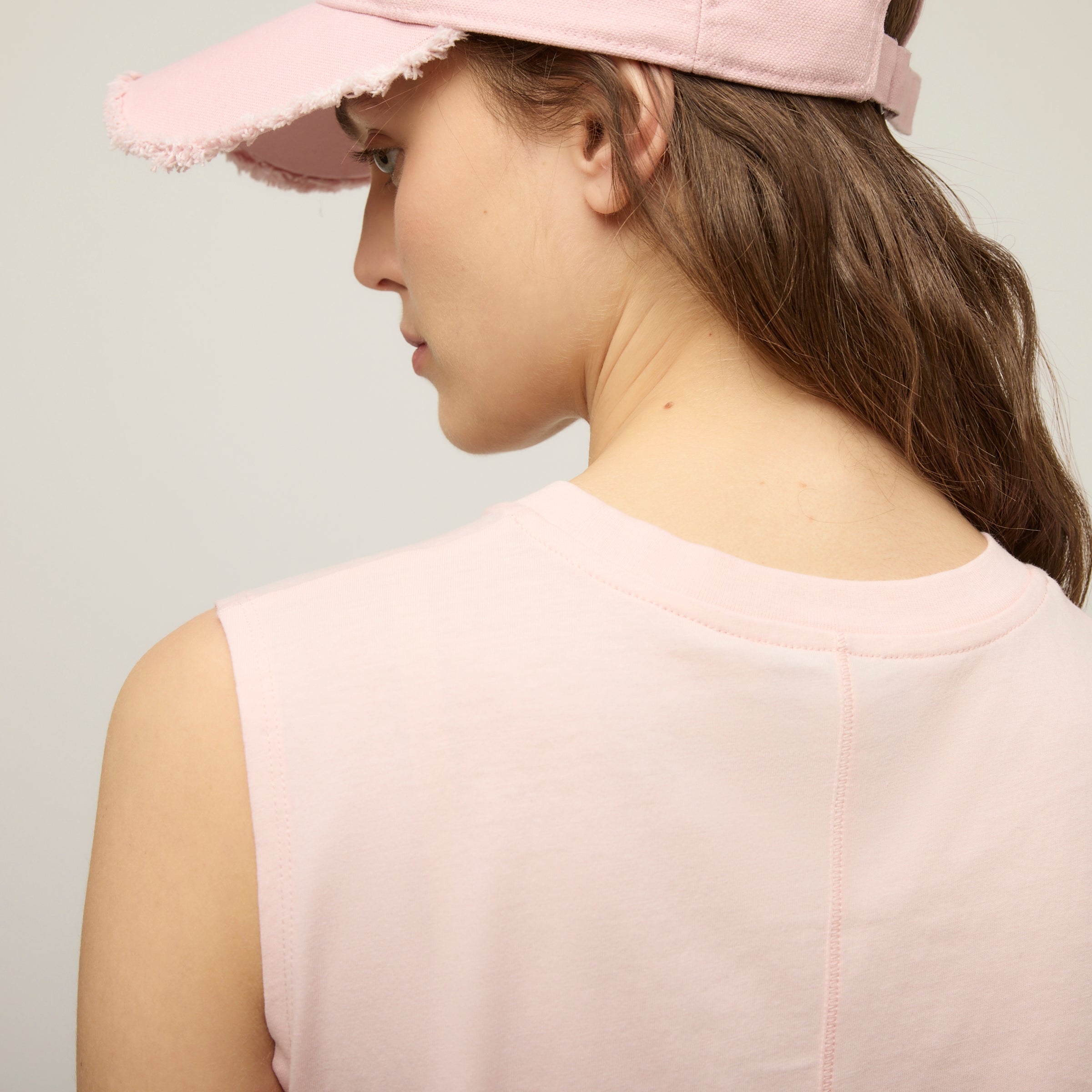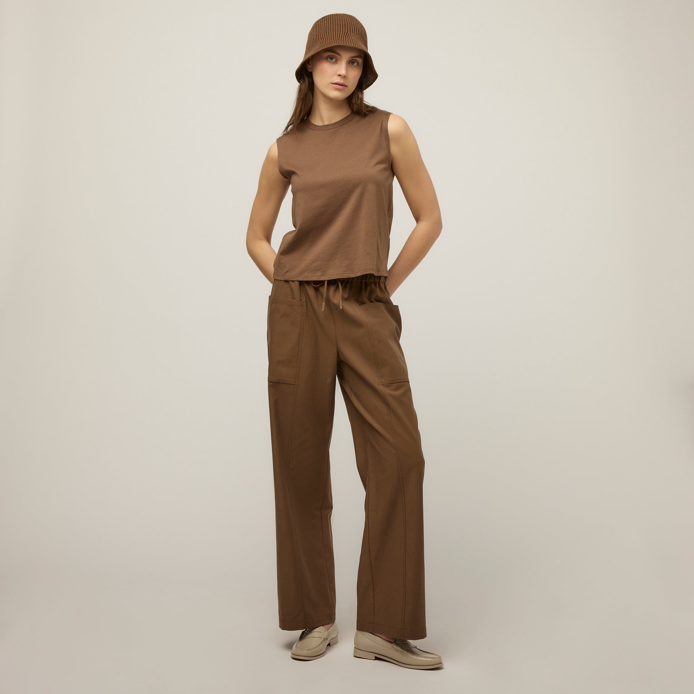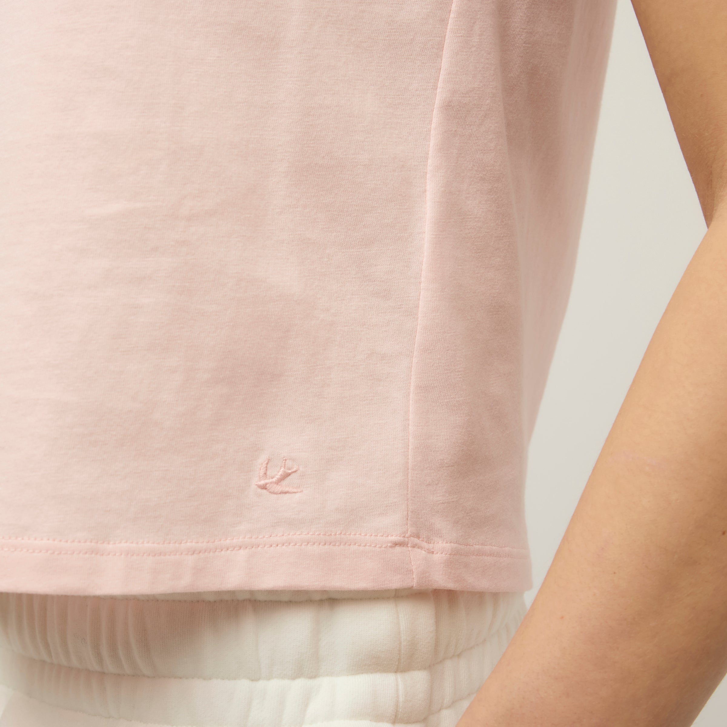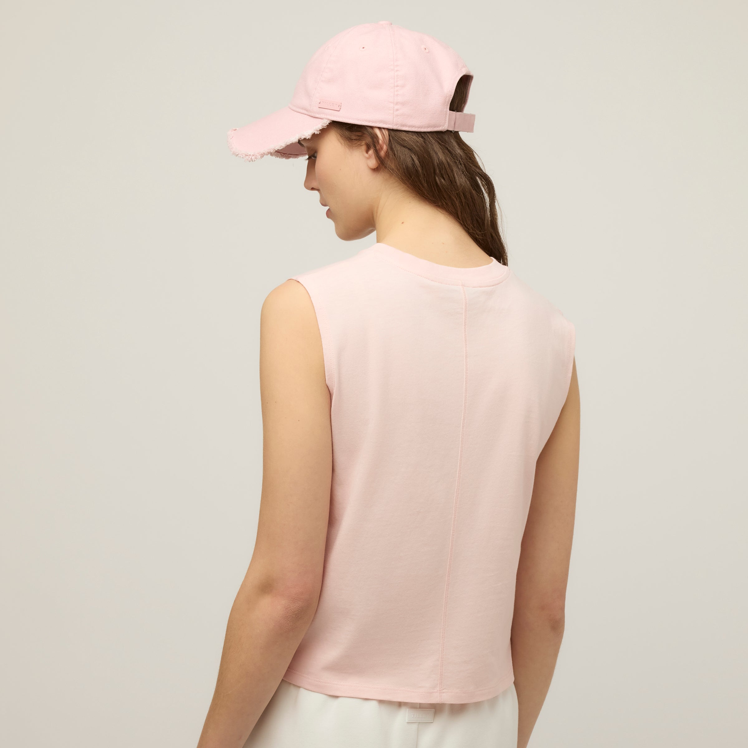 Perfected for anything from exceptionally warm weather to active adventures the Lightweight Muscle Tank is made from a smooth knit blend that combines organic cotton and seaweed fibers to create a naturally soft, breathable fabric with a relaxed drape. The sleeveless cut and wide armholes create an effortless, airy silhouette, perfect for layering or wearing solo. Featuring a cropped length, regular fit, and regular shoulder, it balances comfort with a modern, laid-back feel.
