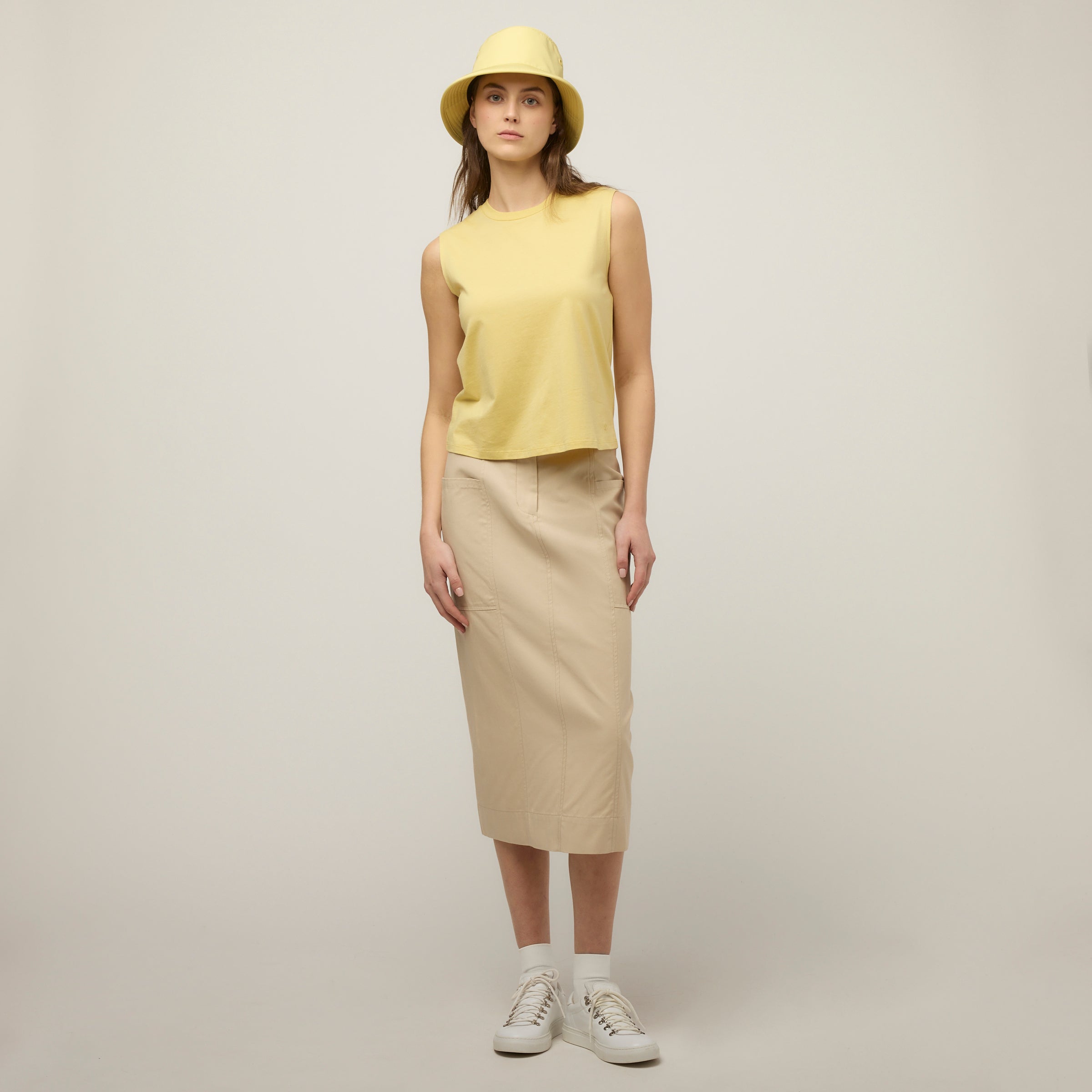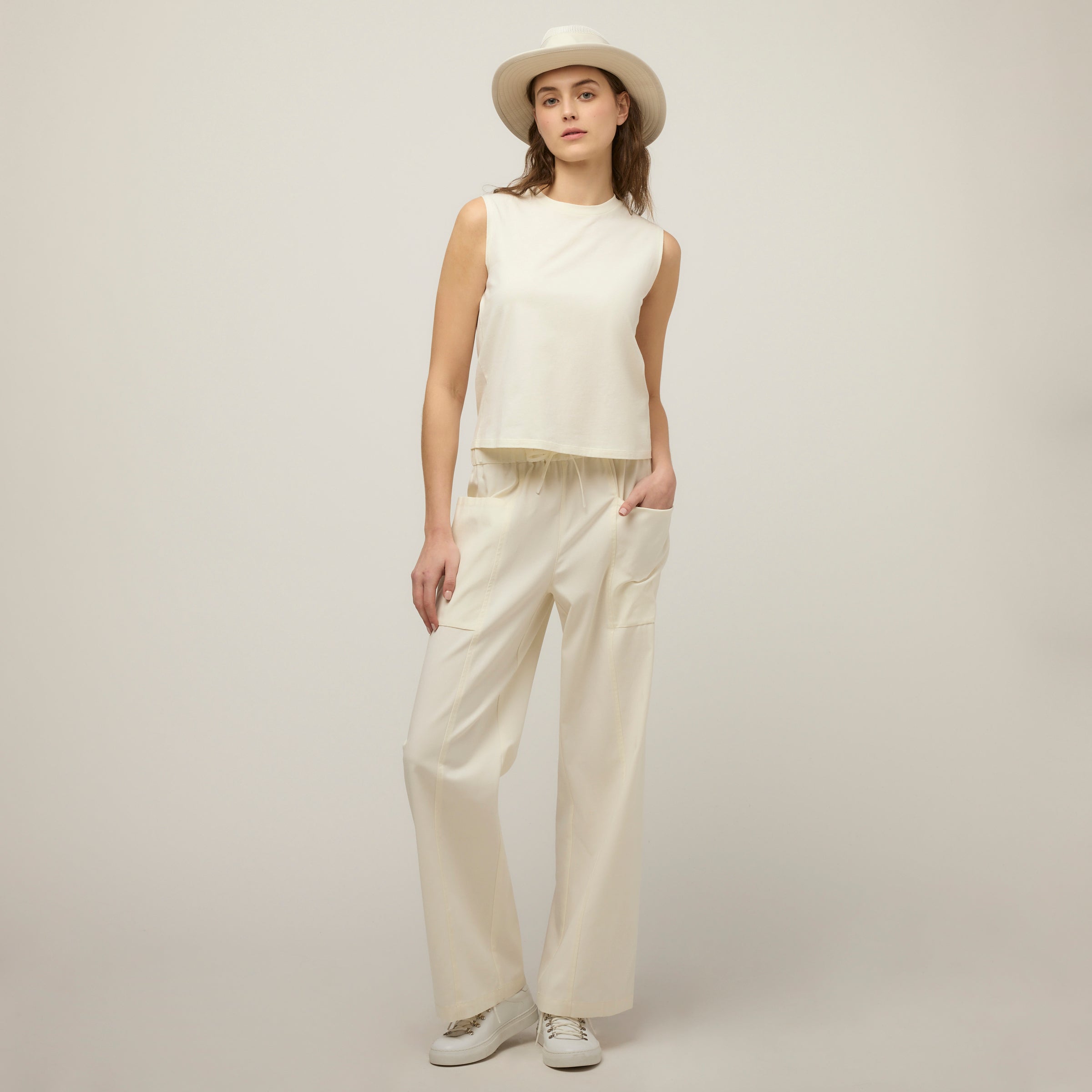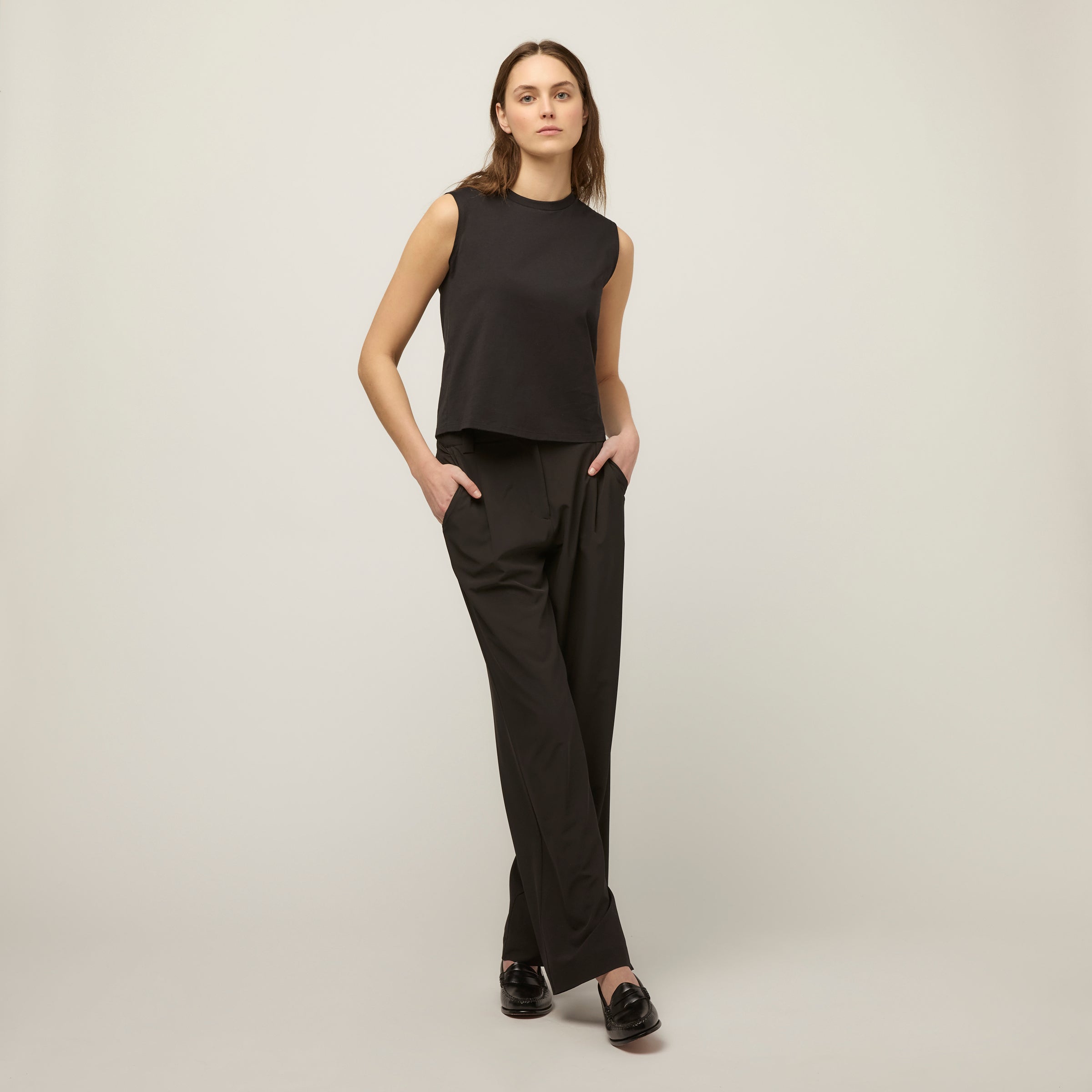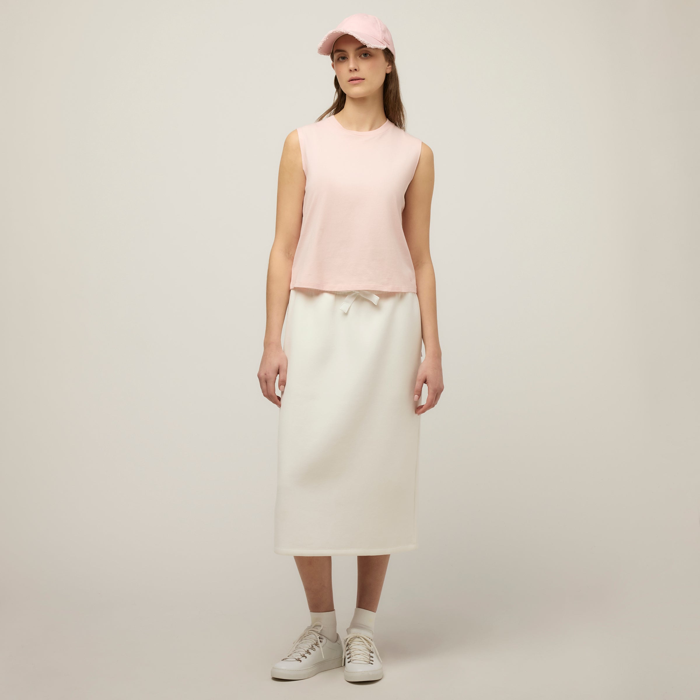 Perfected for anything from exceptionally warm weather to active adventures the Lightweight Muscle Tank is made from a smooth knit blend that combines organic cotton and seaweed fibers to create a naturally soft, breathable fabric with a relaxed drape. The sleeveless cut and wide armholes create an effortless, airy silhouette, perfect for layering or wearing solo. Featuring a cropped length, regular fit, and regular shoulder, it balances comfort with a modern, laid-back feel.