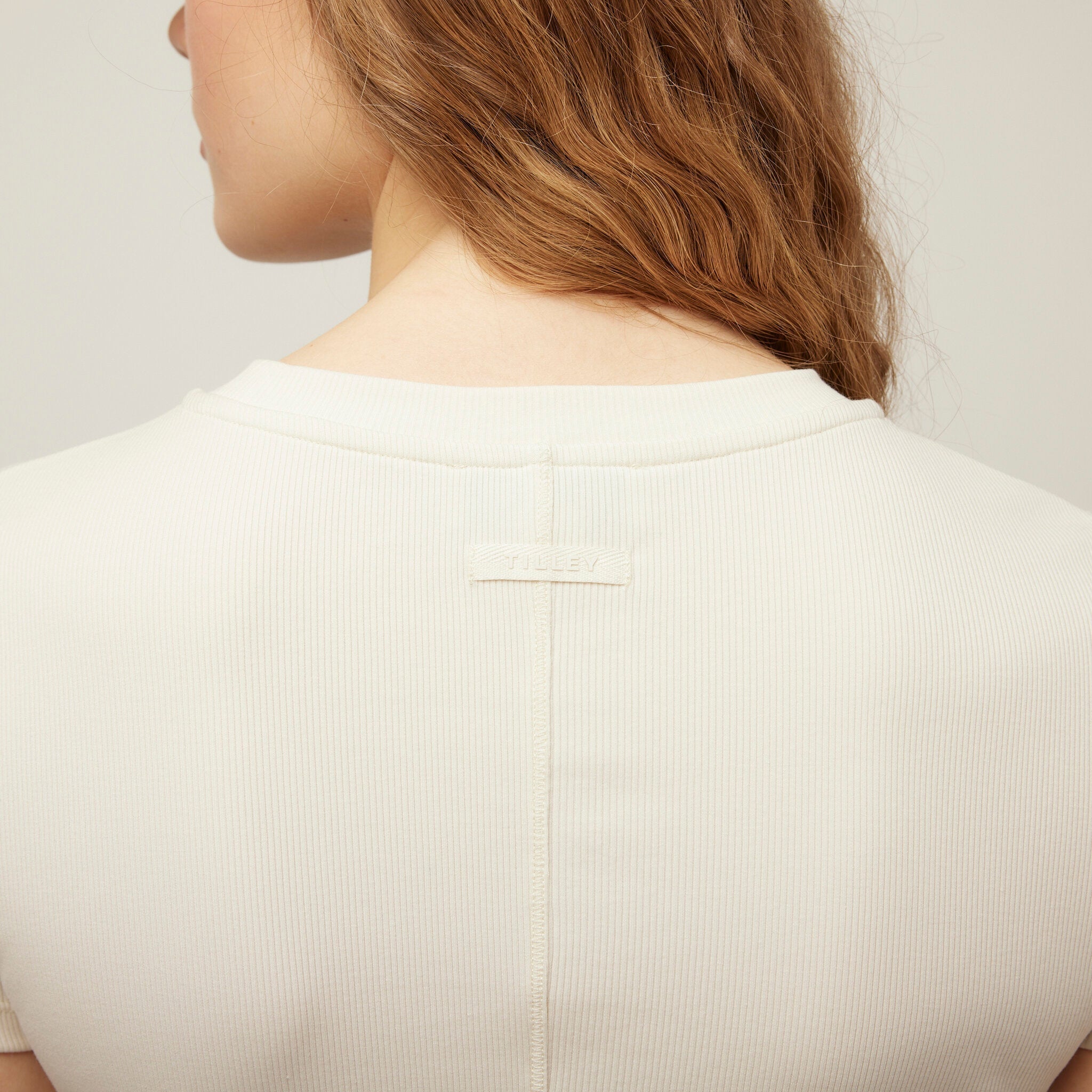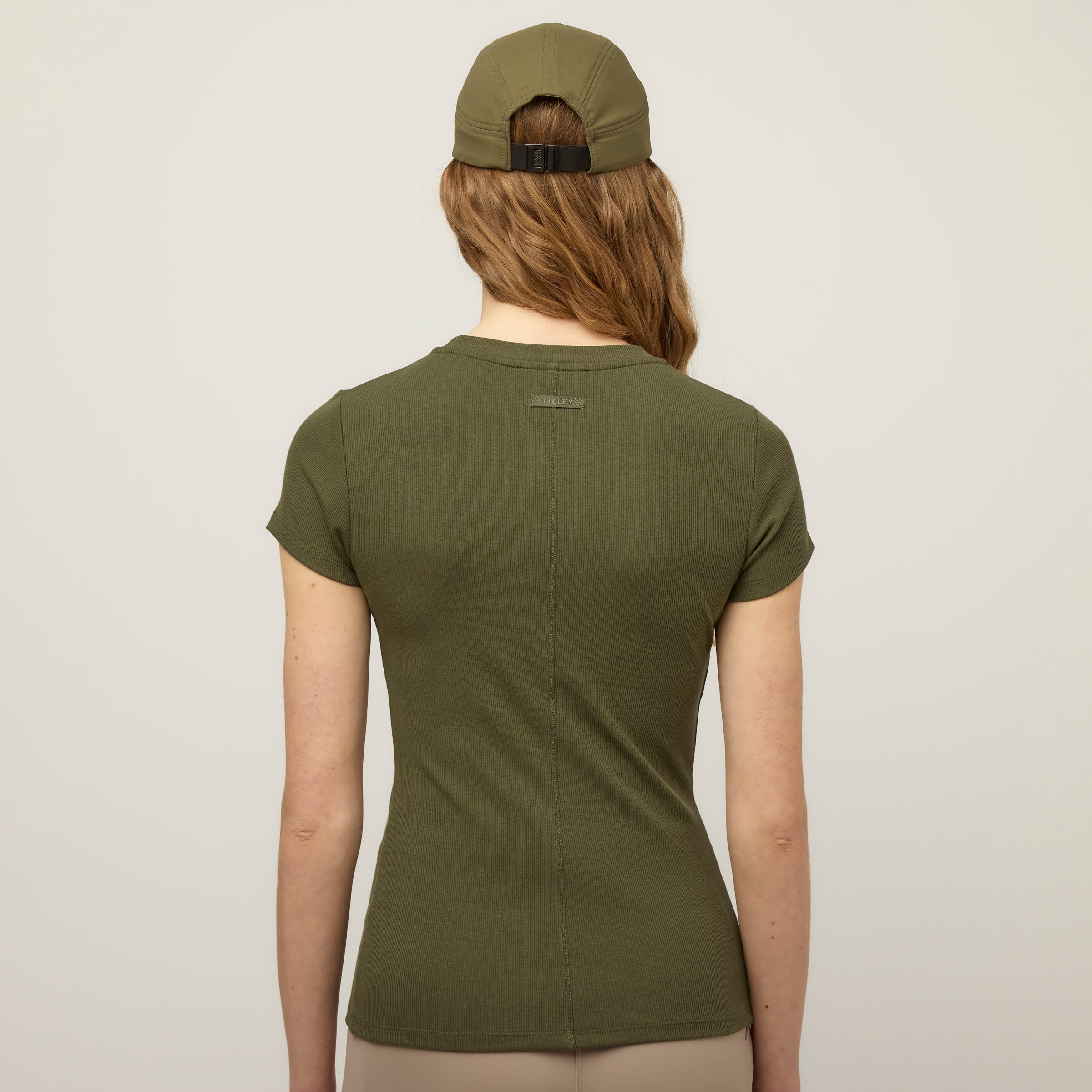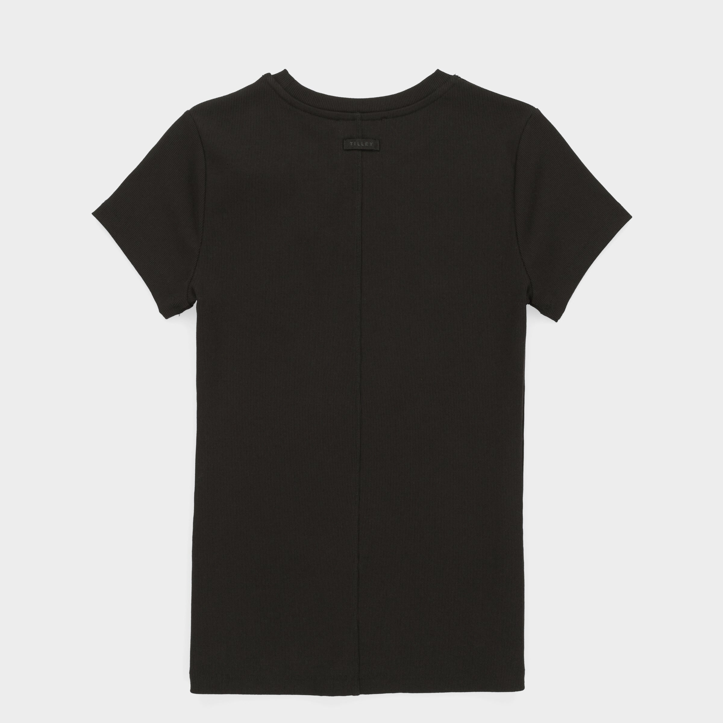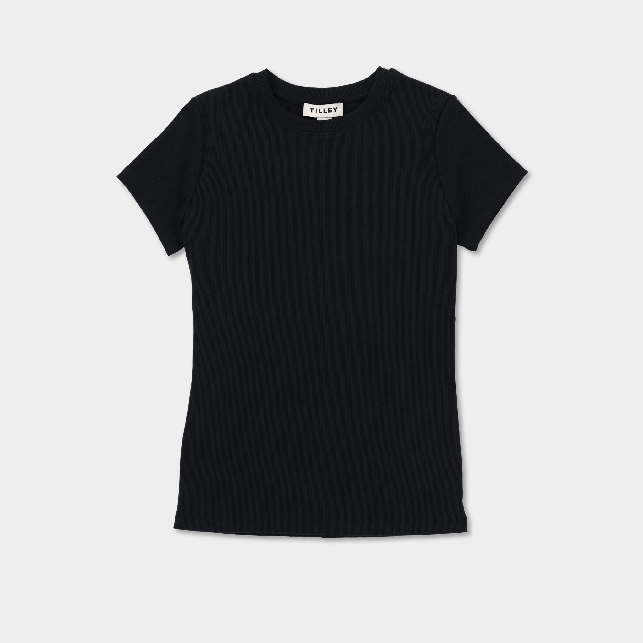 Redefining everyday basics, the Rib Short Sleeve Tee provides a perfect balance of stretch and structure. Made from a breathable Tencel-cotton blend, it wicks moisture to keep you fresh while maintaining a smooth, comfortable feel. The ribbed fabric enhances flexibility without losing shape, ensuring an easygoing yet refined look. Finished with a fitted cut, regular shoulders, regular length, and short sleeves, it’s a polished yet effortless staple that works in any setting.