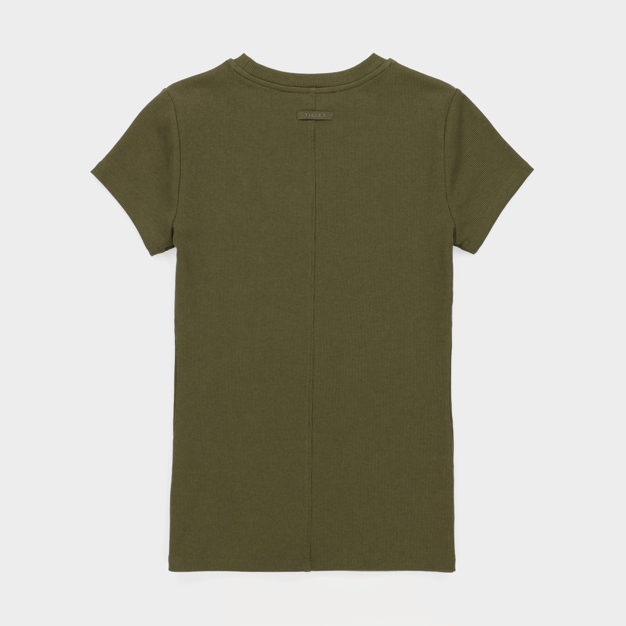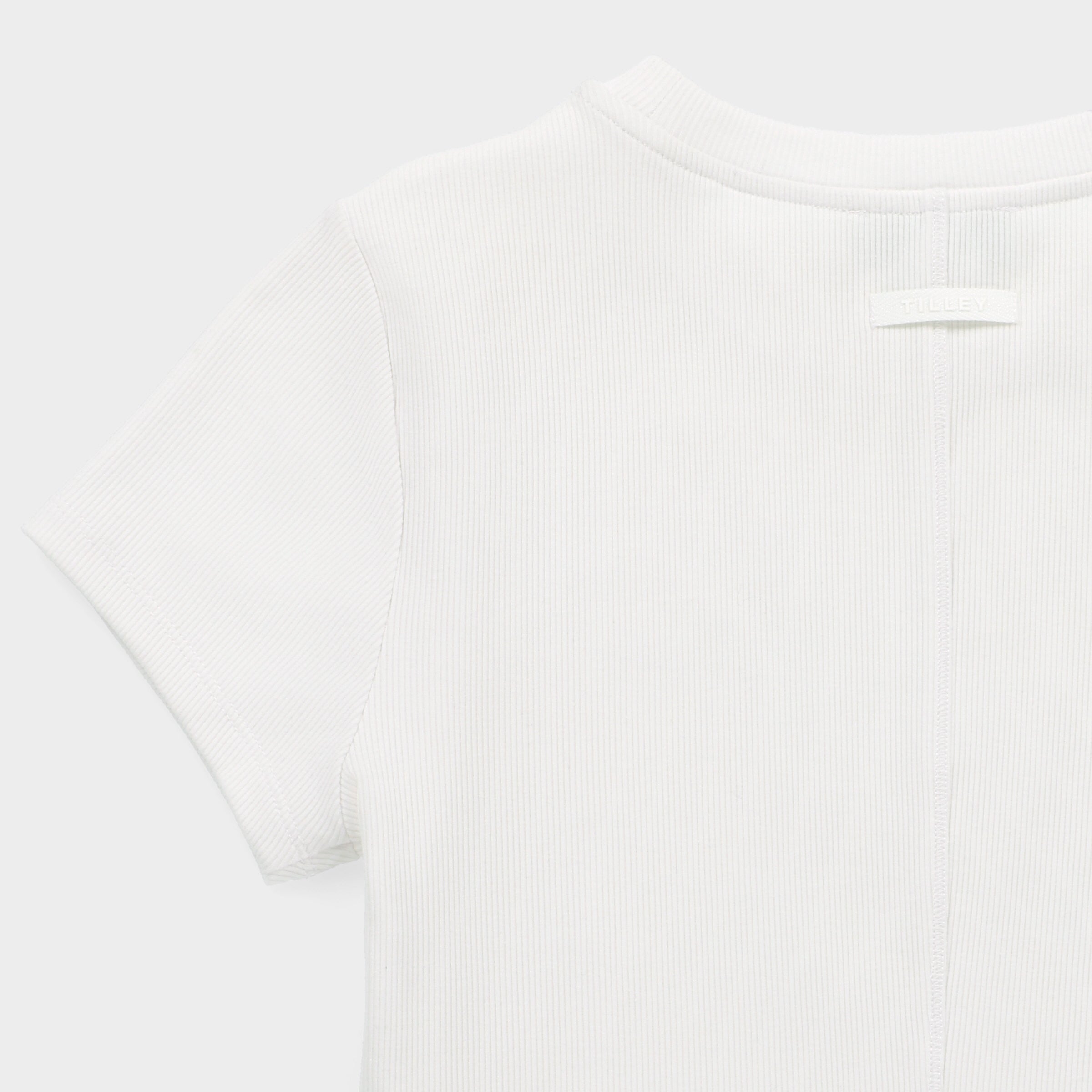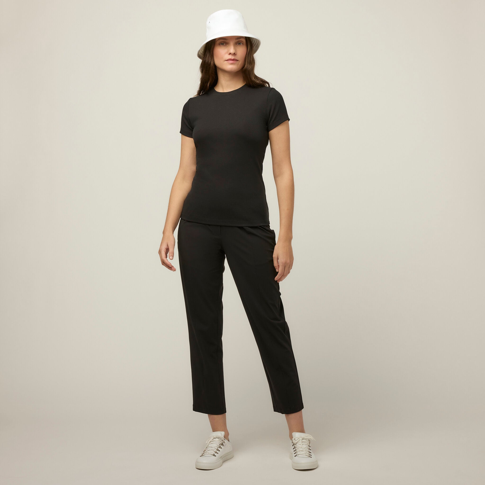 Redefining everyday basics, the Rib Short Sleeve Tee provides a perfect balance of stretch and structure. Made from a breathable Tencel-cotton blend, it wicks moisture to keep you fresh while maintaining a smooth, comfortable feel. The ribbed fabric enhances flexibility without losing shape, ensuring an easygoing yet refined look. Finished with a fitted cut, regular shoulders, regular length, and short sleeves, it’s a polished yet effortless staple that works in any setting.