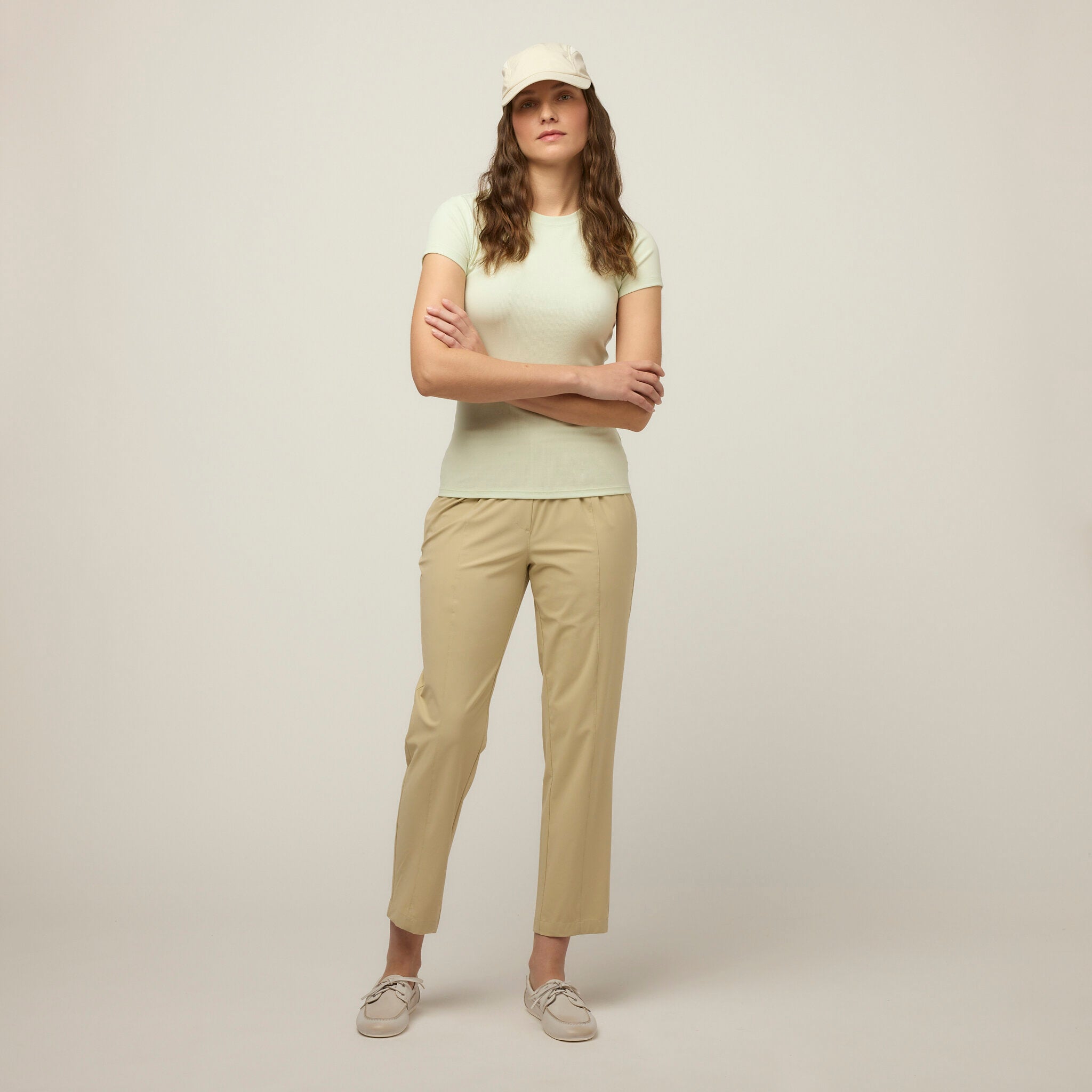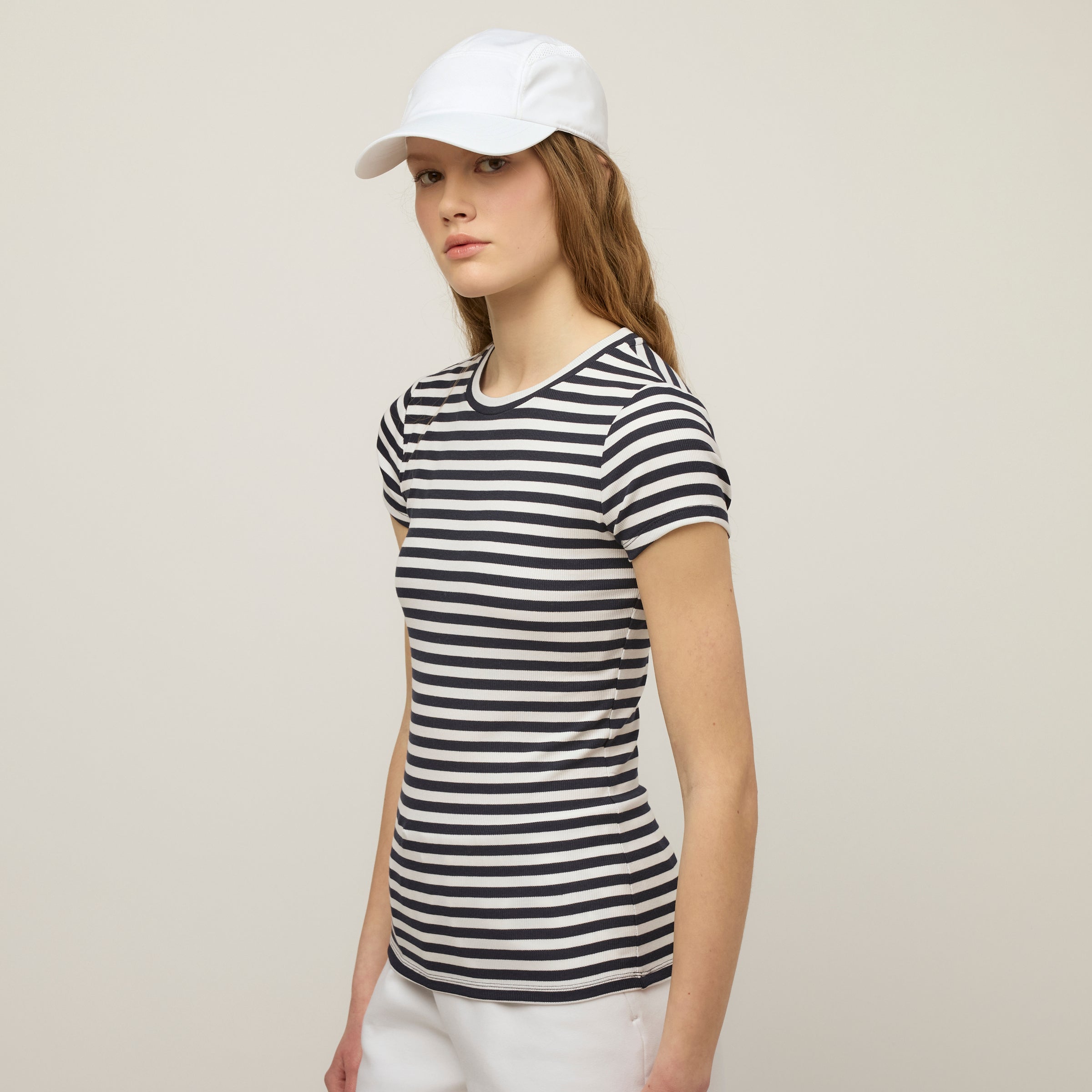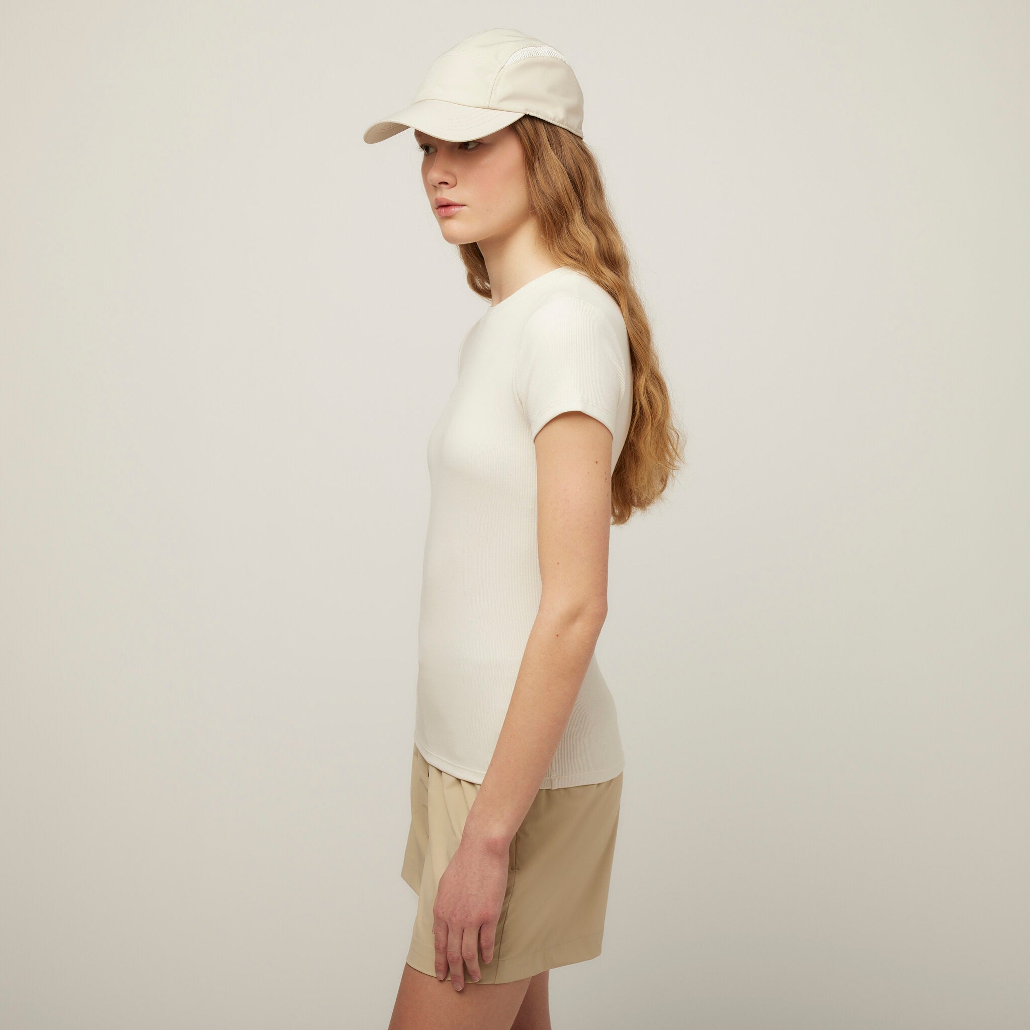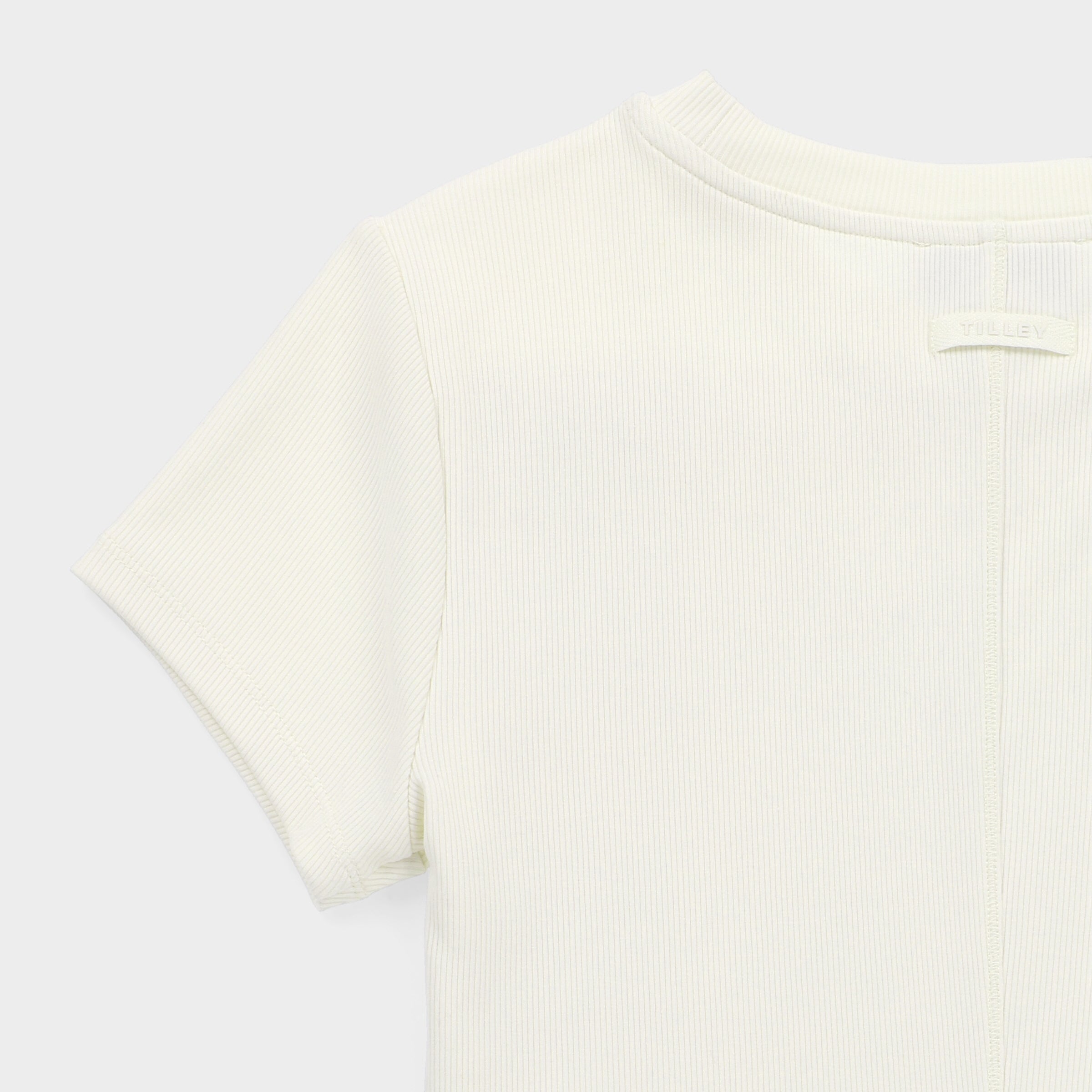 Redefining everyday basics, the Rib Short Sleeve Tee provides a perfect balance of stretch and structure. Made from a breathable Tencel-cotton blend, it wicks moisture to keep you fresh while maintaining a smooth, comfortable feel. The ribbed fabric enhances flexibility without losing shape, ensuring an easygoing yet refined look. Finished with a fitted cut, regular shoulders, regular length, and short sleeves, it’s a polished yet effortless staple that works in any setting.