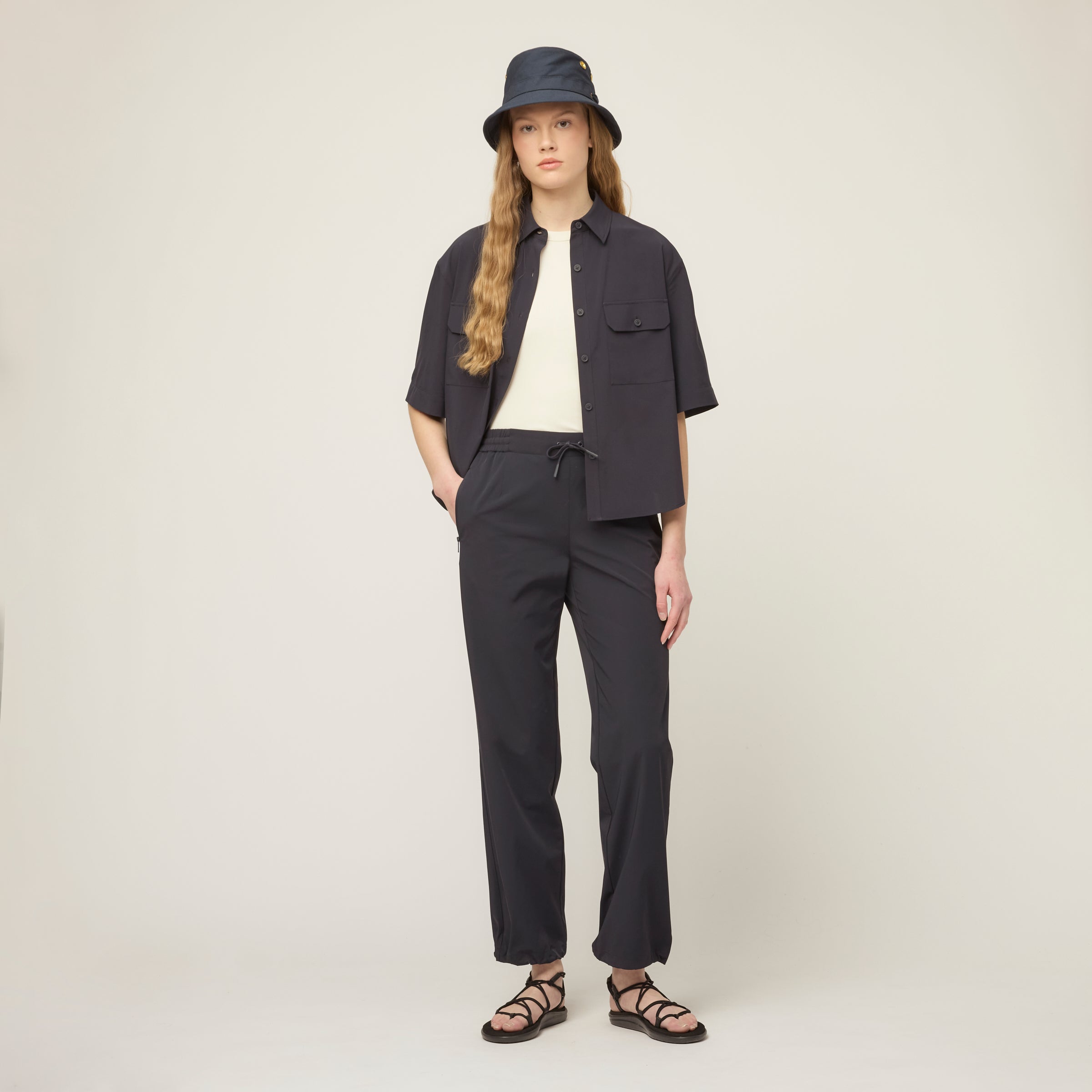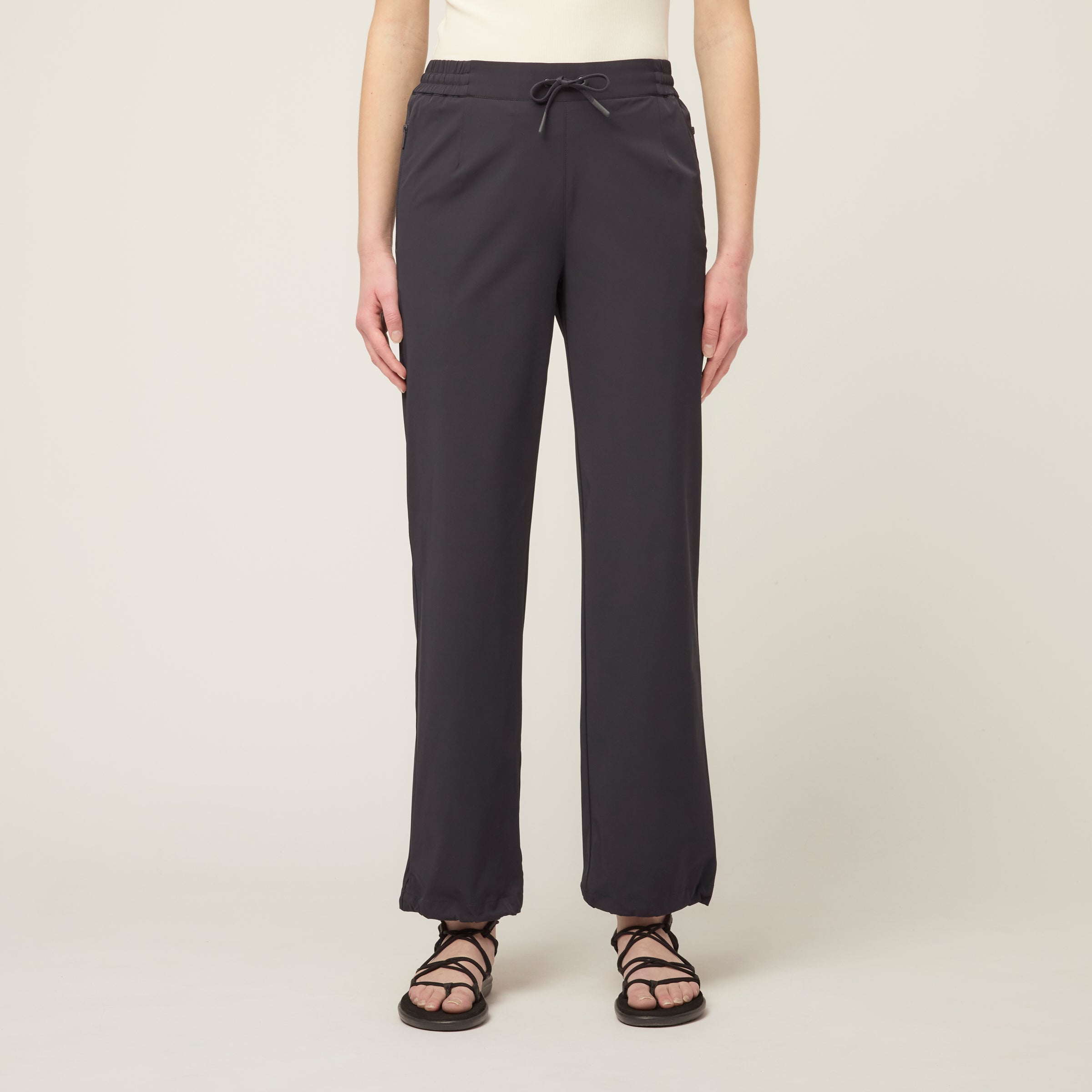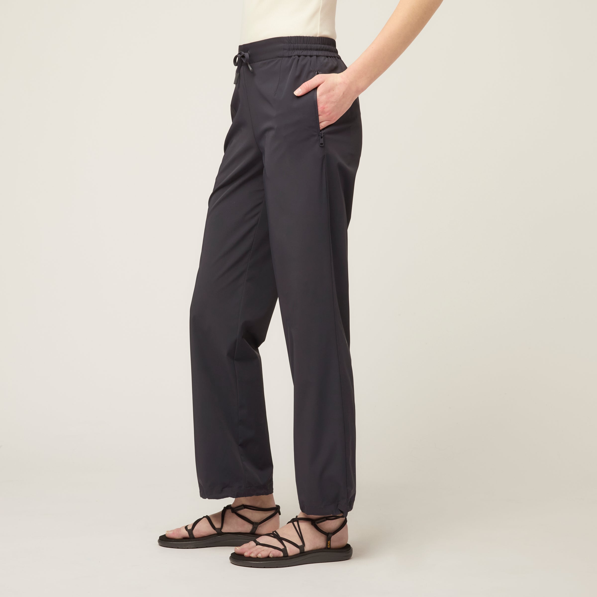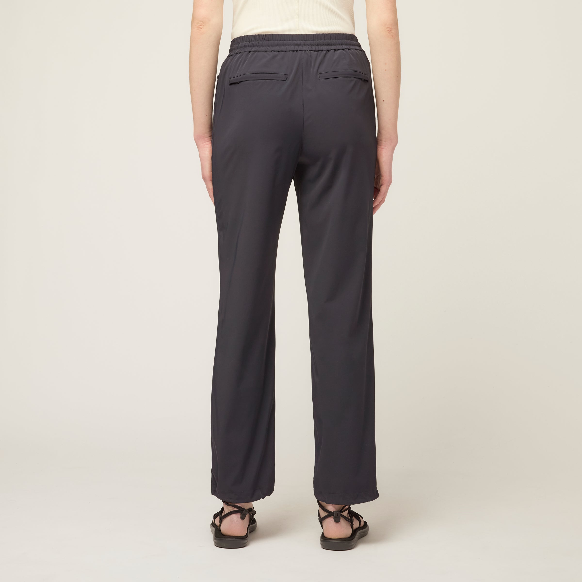 The one-pair solution for days that keep changing: lightweight with 4-way stretch, UPF 50+, and a DWR finish, it moves easily from transit to long walks with comfort built in. An elastic back waistband with a drawcord helps you dial in the fit, zippered side-seam pockets keep essentials secure, and back welt pockets keep the finish clean—then an adjustable bungee hem lets you shift the silhouette as the weather (or the plan) shifts.