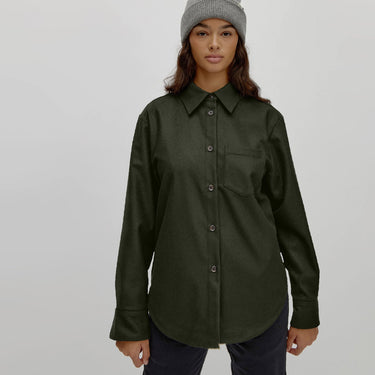 Our Italian Wool Jacket is a must-have layering piece for fall. This shirt jacket uses fabric sourced from Italy and is designed with an interior sleeve lining for easy wear. It gets a modern update with a curved hem and a relaxed fit.